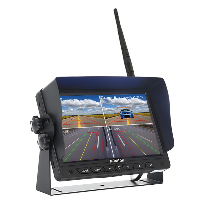 Carleader 7 дюймдік BSD соқыр дақтарды анықтаудың сымсыз бақылау жүйесі, AI анықтау функциясымен біріктірілген сандық сымсыз камера жүйесі, жаяу жүргіншілер мен көлік құралдарын анықтауға және дабылға қолдау көрсетеді, жүргізушіге көліктің айналасындағы жағдай туралы ескертеді. 4 арнаға дейін 720P сымсыз камераларды автоматты жұптастыру, әрбір арна AI анықтау функциясын қолдайды. Анықтау аймағының өлшемін орнату орны мен бұрышына сәйкес реттеу үшін кірістірілген AI калибрлеу мәзірін бақылаңыз. Монитор Циклдік жазудың қосымша функциясын қолдайды, 256 ГБ дейін SD картасын сақтауды қолдайды.