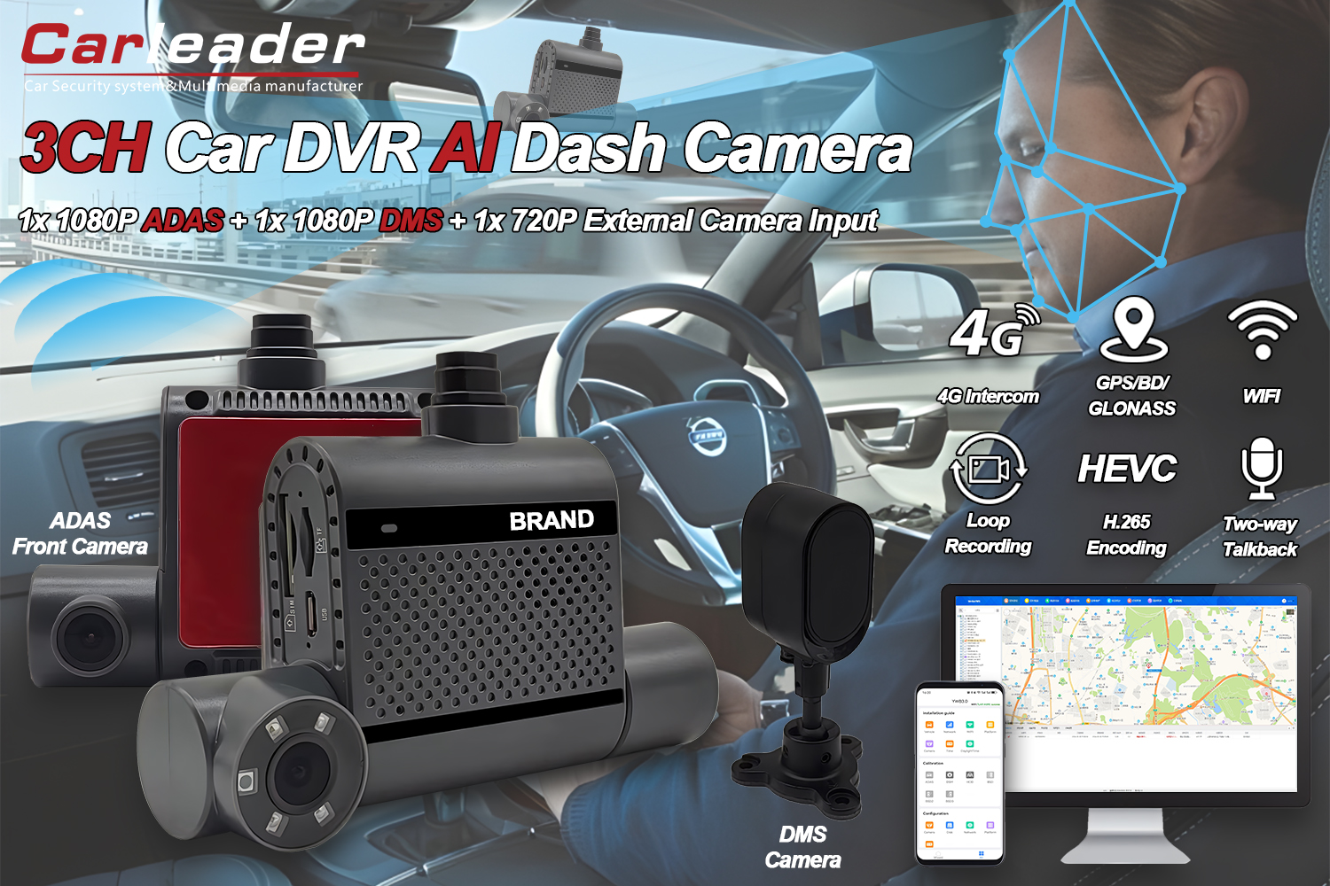 CarleaderAI арнасы AI DASH CAM ADAS және DSM көмегіменАвтокөліктің қауіпсіздігін 3CH HD жазу, Ai-қуаттылығы және берік қосылымы бар. Кәсіби паркті басқару, коммерциялық көлік, сауда-саттыққа немесе таксиге арналған, бұл сызықша камера, жан-жақты қамтуды, ақылды ескертулерді және сенімділіктің алдын-алуды қамтамасыз етеді.