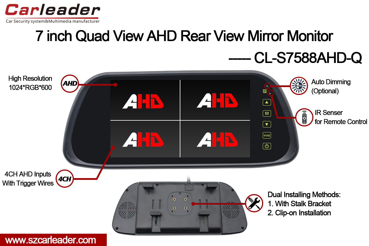 Неліктен таңдауКарлидер7 дюймдік 4CH Quad AHD артқы көрініс айнасының мониторы қосарлы орнатуды қолдайды?