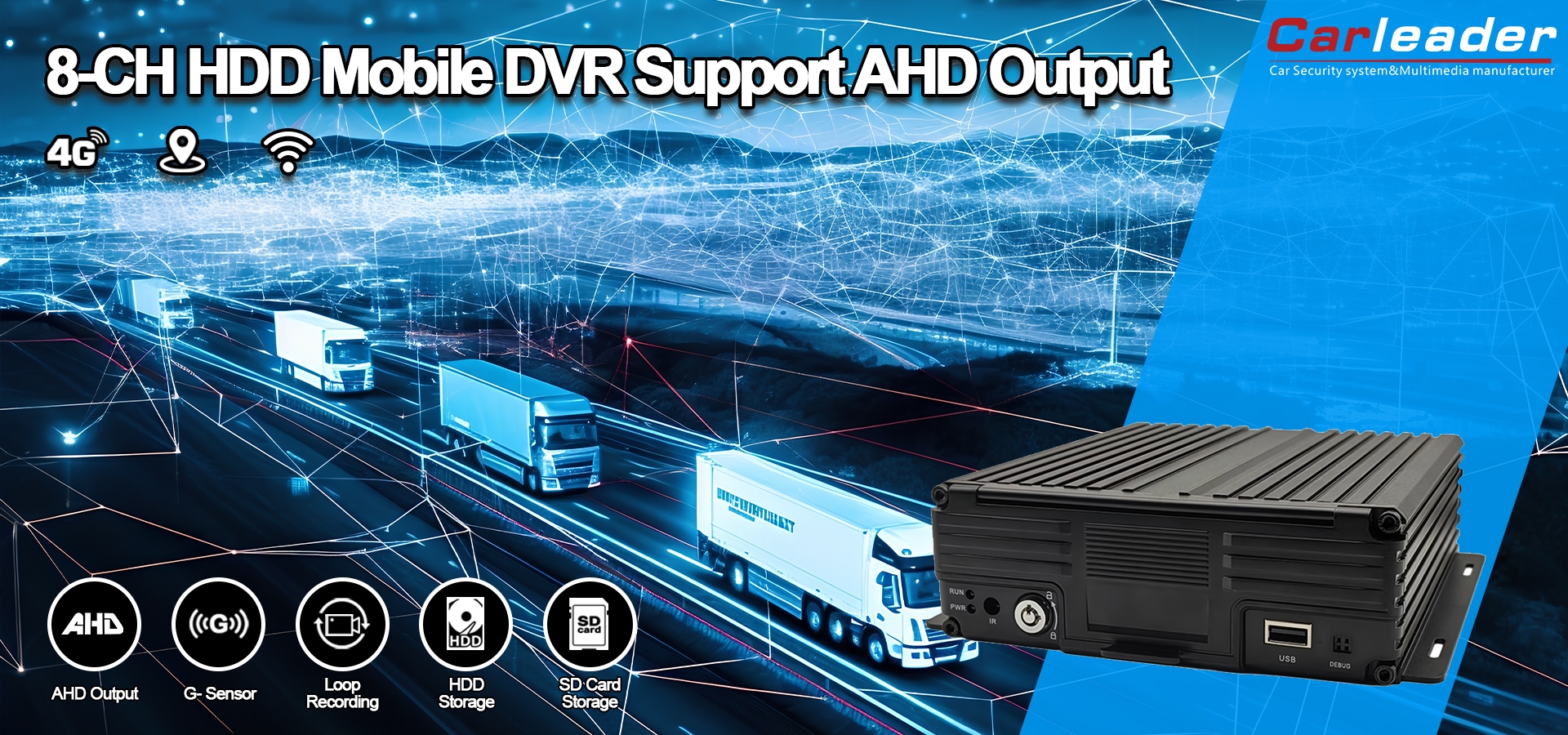 Карлидер8CH 1080P HDD мобильді DVR AHD шығысын қолдаужолдағы қауіпсіздікті, қауіпсіздікті және жедел ақпаратты қамтамасыз ететін заманауи мобильді бейнебақылау үшін сенімді, ауқымды және мүмкіндіктері мол шешімді ұсынады.