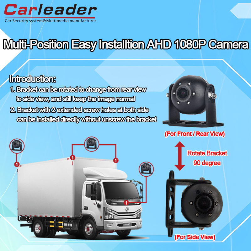 КарлидерAHD ауыр жүк көлігінің алдыңғы / бүйірлік / артқы көрініс камерасы жоғары, төмен, оңға, солға кронштейнді орнату тесігі бар, бұл камераға камера кронштейнін алдыңғы, бүйірлік және артқы көрініс сияқты әртүрлі камера жағдайына сәйкес келтіруге мүмкіндік береді, бұл камераны көлік қауіпсіздігін бақылау жүйесі үшін үйлесімді етеді.